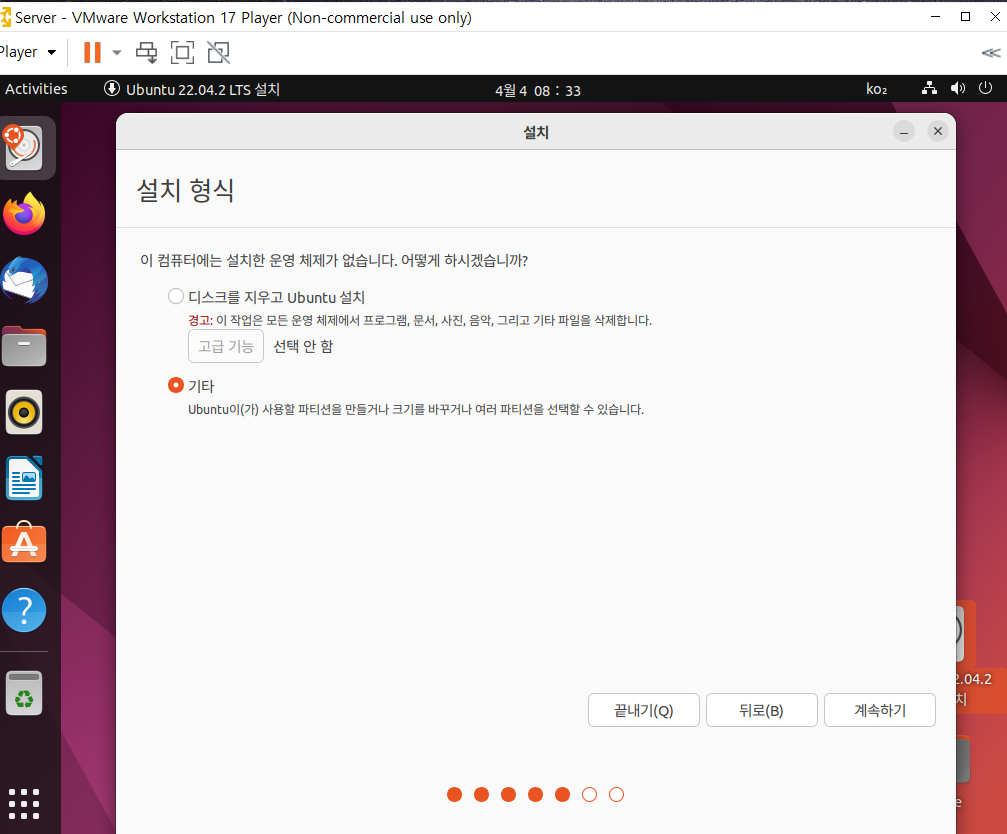 5. 기타를 선택 후 스왑영역을 지정해 준다.