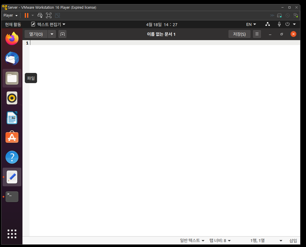 terminal에 gedit명령어를 입력하면 에디터가 실행된다.