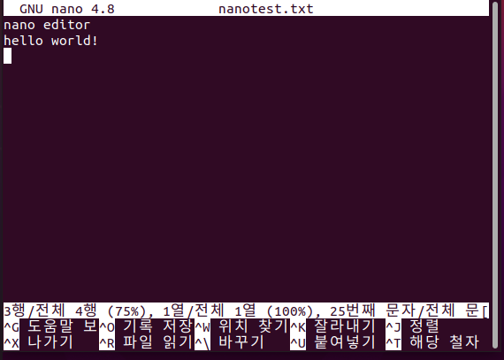 nano는 cli환경에서도 사용이 가능한 텍스트에디터이다.